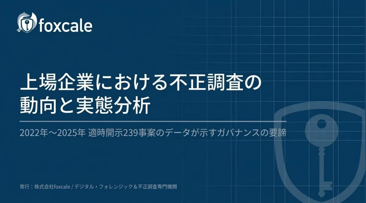 株式会社foxcaleは、上場企業において発生した不正についての調査結果をまとめたレポート「上場企業における不正調査の動向と実態分析」を発表しました。このレポートは2022年から2025年までの239件の不正調査報告書を元にしたもので、ガバナンスの現状と今後の展望を探る必見の資料となっています。