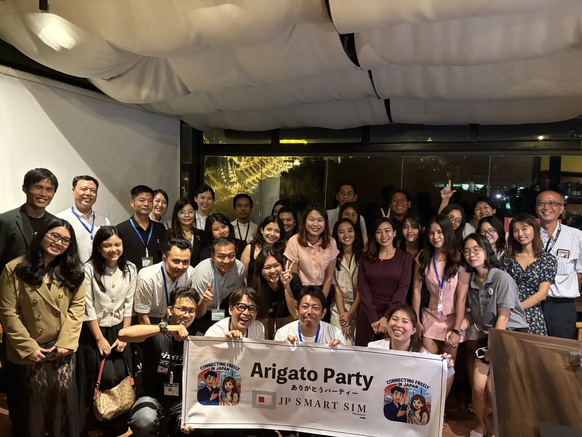 2025年8月25日と26日の二日間、DXHUB株式会社はミャンマーのヤンゴンで、自社が展開する在留外国人向け通信サービス「JP SMART SIM」の現地代理店、Growth Myanmar Co.,Ltdと共に感謝イベント「Arigatoパーティー」を開催しました。このイベントの主な目的は、現地のパートナー企業との交流を図り、サービスの拡大に向けた情報共有とネットワークの強化を図ることです。