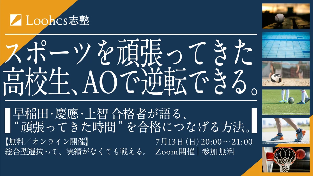 - - イベント名: スポーツを頑張ってきた高校生のための 総合型選抜 徹底解説講座