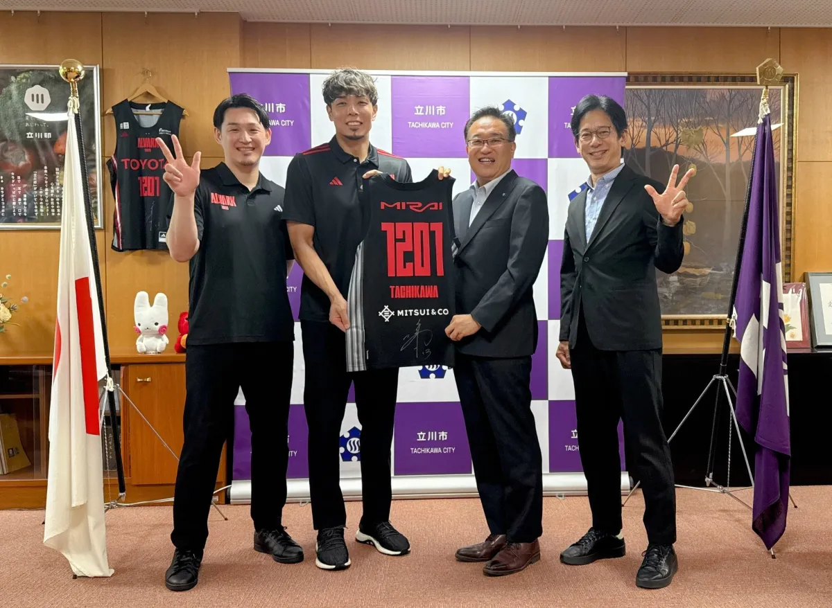 2025-26シーズンの幕開けが迫る中、男子プロバスケットボールクラブ「アルバルク東京」の選手たちが立川市を訪問しました。訪問は、9月10日(水)に行われ、クラブの代表取締役である林邦彦社長、選手の菊地祥平、そして伊藤大司GMが立川市長に面会し、チームの抱負を伝えました。