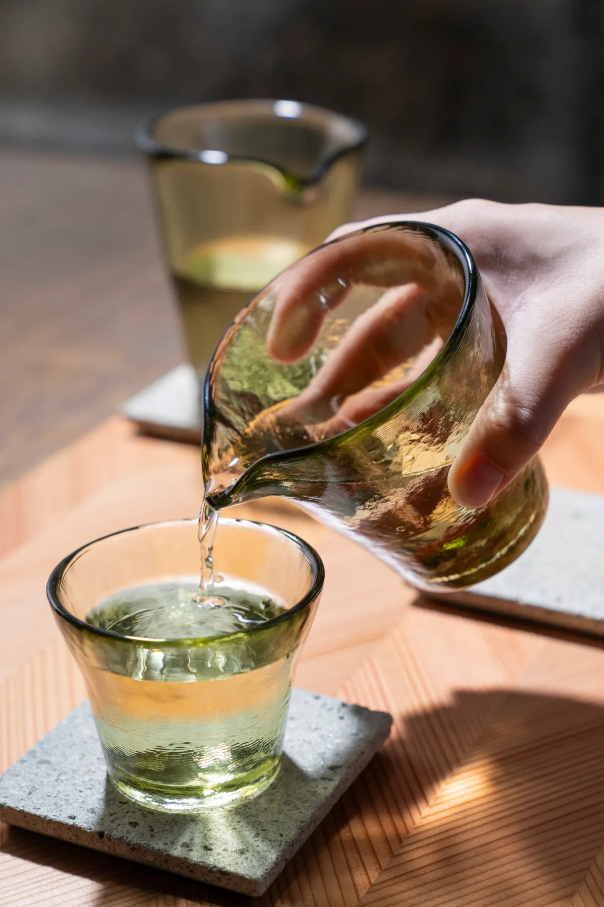 製品デザインのポイントは、自然而も美しい「大谷グリーン」を活かし、重厚な印象を与えつつも現代にマッチした洗練されたフォルムです。片口やぐい呑み、タンブラーなど、サイズや形状も多様に展開されています。どんな食卓でも活用できるアイテムとして、家庭からレストランまで多くの場面で素敵に映えることでしょう。
