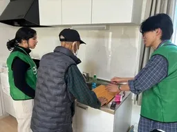 また、10月5日には仮設住宅に住む方々との「どこでもカフェ」に参加し、親しい会話を通じてコミュニティの形成を促進しました。11月には、仮設住宅のキッチンを広く使えるようにする「まなピタ」の製作ワークショップを行い、参加者同士のコミュニケーションを深める試みもしました。