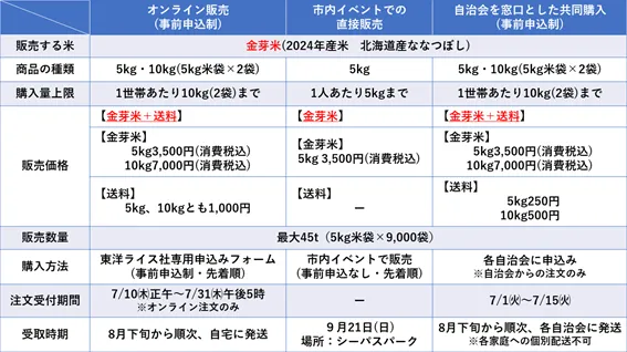 販売予定の「金芽米」は、2024年産の北海道産ななつぼしを使用し、特別な精米法で加工されています。1袋の価格は5kgで3,500円(税込)と設定されており、手頃な価格で高品質なお米が提供されることは、市民にとって大きなメリットです。購入方法も多岐にわたり、オンライン販売や市内で開催されるイベントでの対面販売に加え、自治会を通じた共同購入も選択肢として用意されています。自治会による共同購入は、その地域ごとに判断されるため、一部の自治会限定となることもあるとされています。