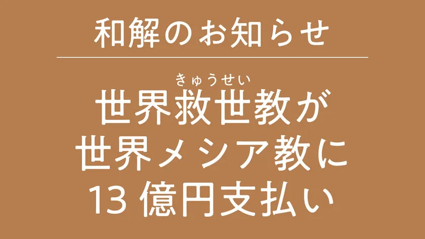 和解内容では、世界救世教が13億円を支払うことが合意され、また、過去に分与された物件の返還義務は発生しないことも決まりました。これにより、世界メシア教は新たな出発を遂げることができる状況が整いました。