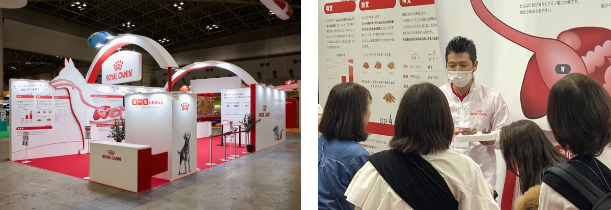 ロイヤルカナンブースでは、「“食べる”を科学する~“食べる”のはじまりからおわりまで~」をテーマにし、犬・猫の食事における「嗜好性」と「消化性」に焦点を当てました。参加者は直感的に学ぶことができる内容が多く、科学的な情報を通じて自分のペットへの理解を深める機会を得ました。