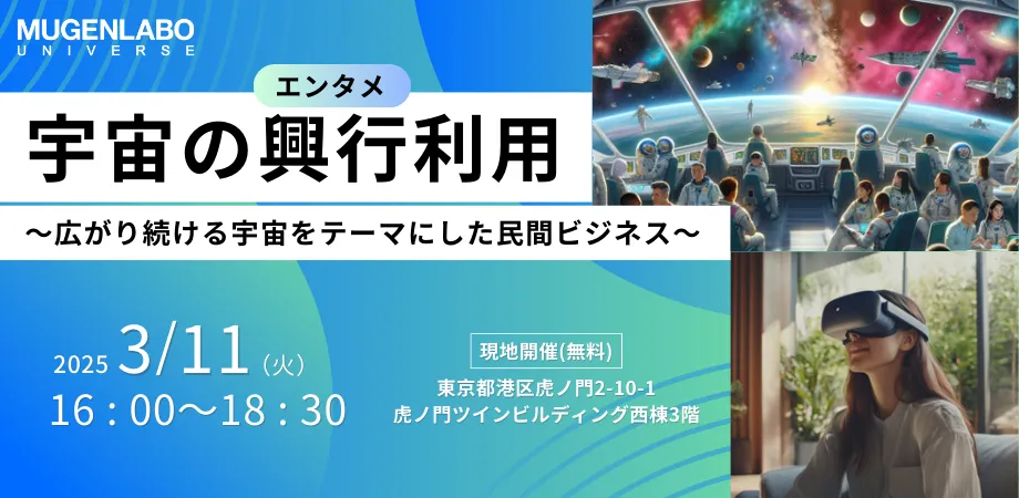 「MUGENLABO UNIVERSE」は、KDDI株式会社が主催し、宇宙事業にかかわるスタートアップや異業種の企業、大企業などが集まり、宇宙技術を利用した地上の課題解決に取り組むプログラムです。本イベントは2024年3月11日(火)に開催され、テーマは「宇宙の興行利用」。