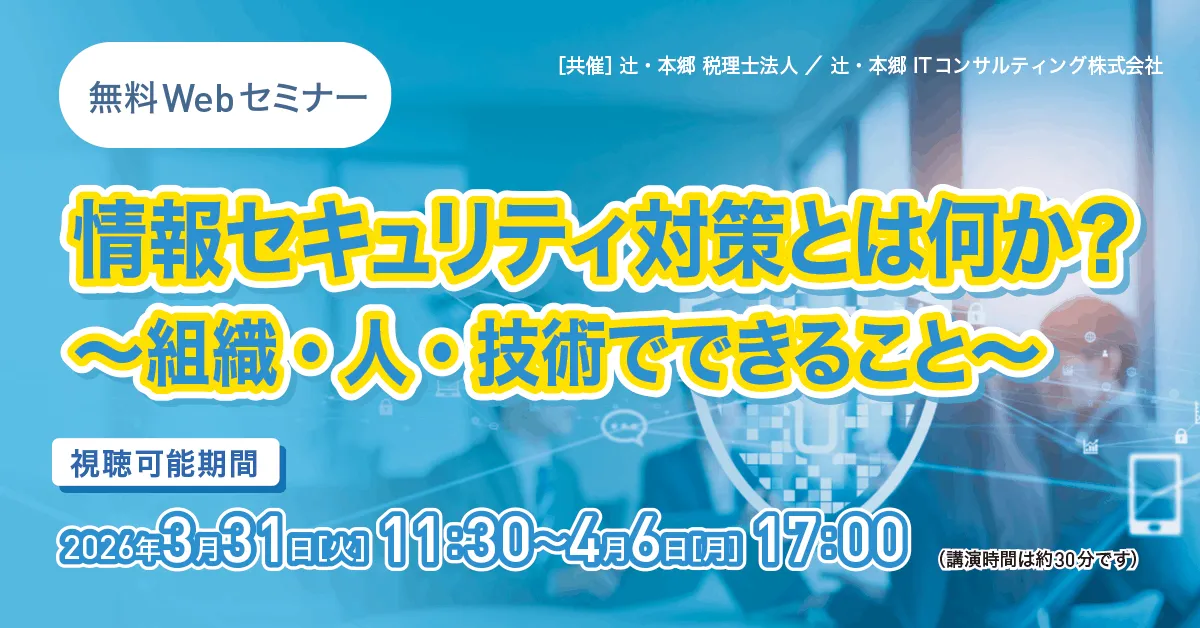 辻・本郷 ITコンサルティング株式会社は、情報セキュリティに関して多くの企業が直面するリスクに効率的に対処するための無料Webセミナー「情報セキュリティ対策とは何か? ~組織・人・技術でできること~」を開催します。セミナーは