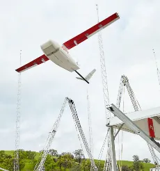 この配送には、アメリカのZipline社が製造した固定翼ドローンが使用されます。事前に飛行許可を取得した指定の経路を通り、陸路で60分かかる距離をドローンでわずか25分で飛行可能な仕組みです。