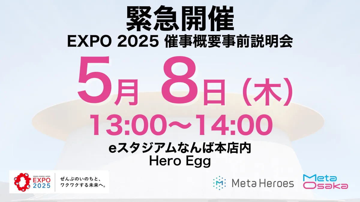 説明会は2025年5月8日に、大阪市浪速区にある「Hero Egg(eスタジアムなんば本店内)」で開催され、報道関係者向けに午前13時から1時間にわたって行われました。説明会のスケジュールは以下のとおりです。