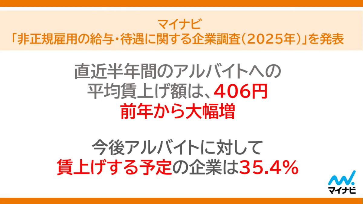 マイナビが発表した「非正規雇用の給与・待遇に関する企業調査(2025年)」は、アルバイトの賃上げに関する重要な情報を提供しています。この調査は2024年12月から2025年5月の間に行われ、幅広い業界の企業を対象としました。