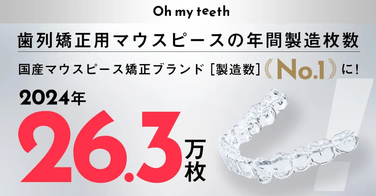 株式会社Oh my teethが、2024年の年間製造枚数において僅か1年で大幅に業績を伸ばし、26.3万枚を達成しました。この結果は、GMO Research & AI, Inc.が実施した調査に基づいています。その結果、Oh my teethは国内のマウスピース矯正用製品の製造においてNo.1の地位を獲得しました。