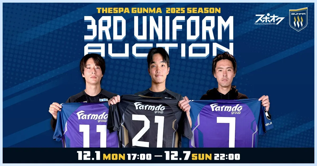 ザスパ群馬の選手たちの熱意や思いが詰まった3rdユニフォームを手に入れる絶好のチャンスです。サポーターとして、ぜひこの機会にご参加いただき、チームを応援する一助としてください!