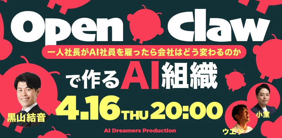 NEXT INNOVAITION株式会社の代表、黒山結音氏が、2026年4月16日(木)20:00より開催されるオンラインセミナー「OpenClawで作る『AI組織』〜一人社長がAI社員を雇ったら会社はどう変わるのか〜」に登壇します。このセミナーは、申し込み者数が400名を超える注目のイベントとなっています。参加費は無料で、AIを活用した業務の分担や自動化について学ぶ絶好の機会です。