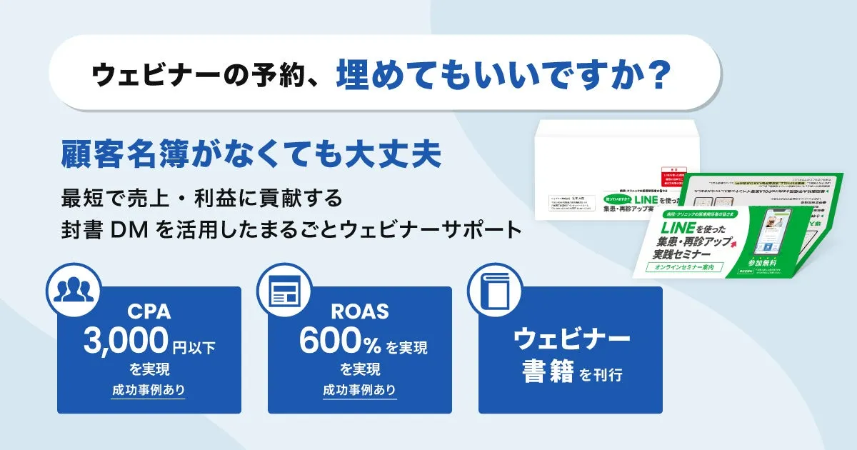 新時代のウェビナー支援、ショクサイの「封書DMを活用したまるごとウェビナー サポートプラン」をぜひご活用ください。