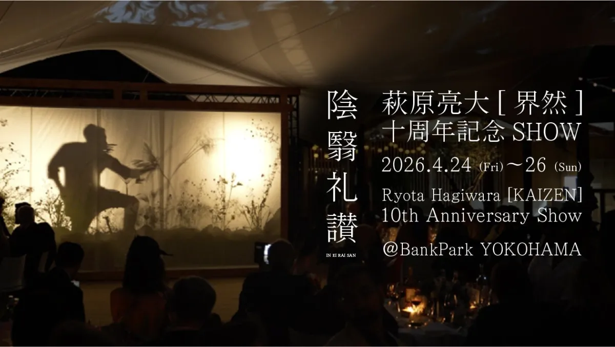 華道家として10年の節目を迎えた萩原亮大が、2026年4月24日(金)から26日(日)の間、横浜のBankPark YOKOHAMAで自身のキャリア史上最大規模の花いけイベント「陰翳礼讃」を開催します。このイベントは来る2027年に予定されている国際園芸博覧会を見越した、横浜市の新たな文化発信の場として注目されています。