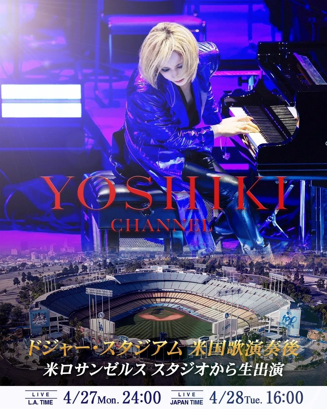 日本のロック界のアイコンYOSHIKIが、アメリカでの特別イベントに登場します。2024年4月27日、ロサンゼルスのドジャー・スタジアムで開催される「Japanese Heritage Night presented by Daiso」にて、アメリカ国歌を演奏することが決定しました。このイベントは、日本の文化や伝統を祝う特別な意味を持ち、YOSHIKIの演奏が試合前のセレモニーの一部として行われます。