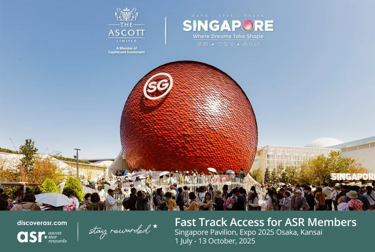 アスコットのロイヤリティプログラムであるアスコットスターリワーズ(ASR)は、旅行者に向けて「Stay Rewarded★(リワードのある旅)」を掲げており、様々な特典を通じて旅をさらに魅力的にすることを目指しています。現在、ASRメンバーの中でも特にプラチナ、ゴールド、シルバーステータスをお持ちの方々には、2023年7月1日から10月13日までの期間中、シンガポールパビリオンへの優先入場特典が用意されています。
