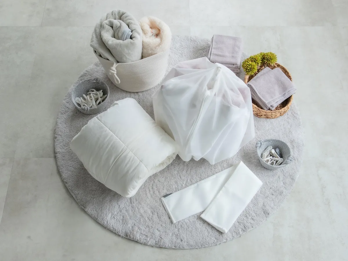 提案アイテム: 『フランドリー・まとめて洗える特大ネット70』を使用することで、布団をしっかり包み込みつつ、水流を分散させることができ、洗濯槽への衝撃も軽減されます。