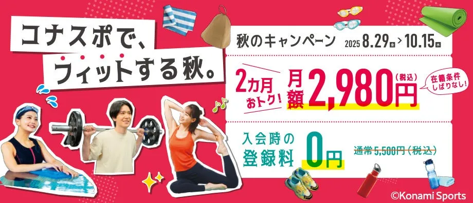 2025年の秋、コナミスポーツクラブが新たなキャンペーンを実施します。期間は