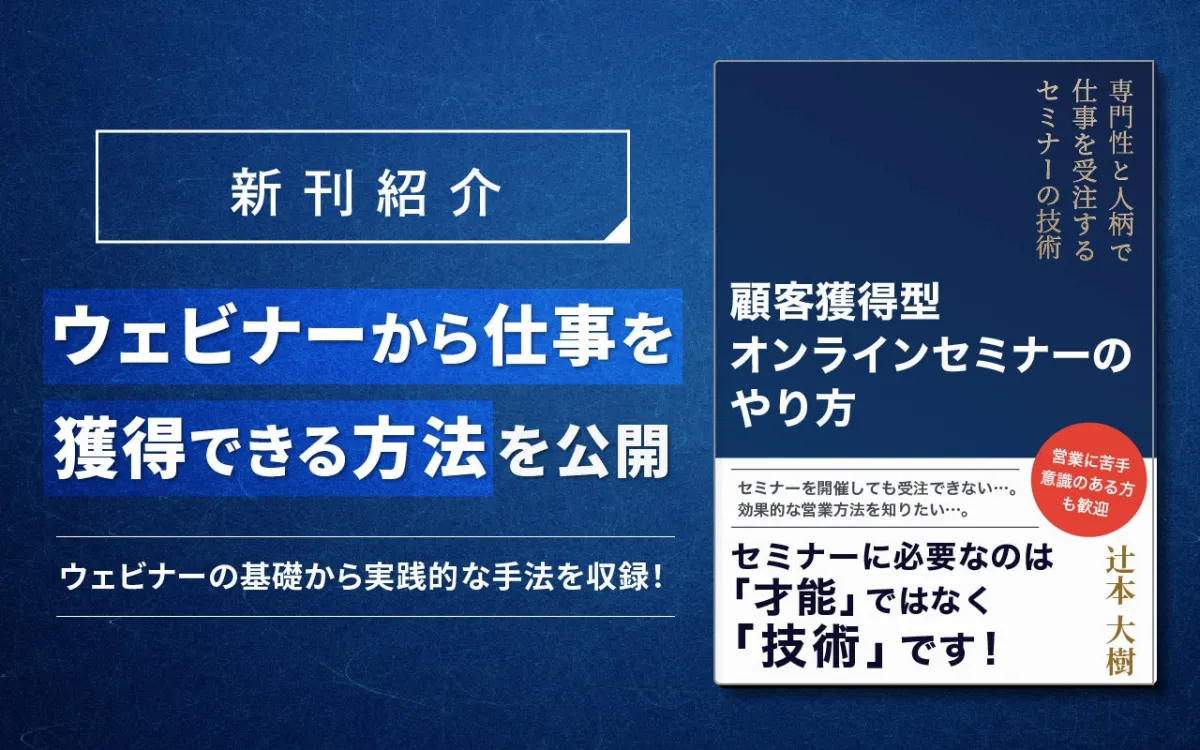 新型コロナウイルスの影響により、私たちのビジネス環境は劇的に変化しました。それに伴い、セミナーやイベントのオンライン化が急速に進み、多くの人々が新たな学びの場を求めるようになりました。そんな時代の流れに乗り、辻本大樹による新刊『顧客獲得型オンラインセミナーのやり方:専門性と人柄で仕事を受注するセミナーの技術』の発売が発表されました。