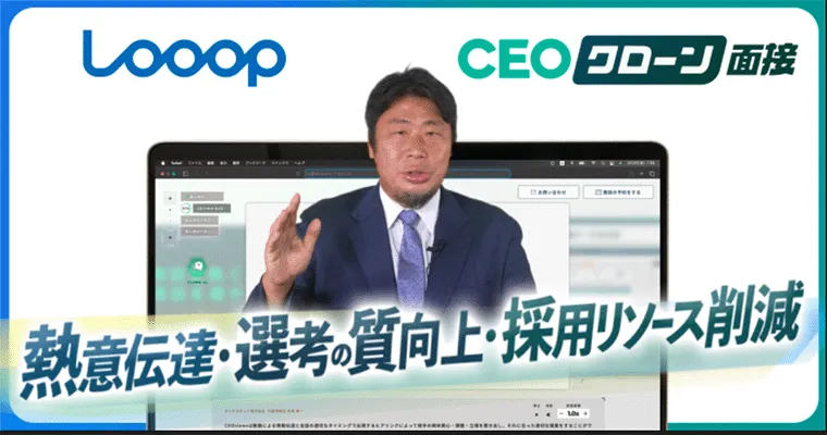 これまで『CEOクローン』は商談の効率化に成功し、商談時間の削減や面談工数の圧縮など多くの成果を上げてきました。Looopは、このAI技術を駆使することで、効率的な採用活動を実現し、さらなる人材確保に貢献することを目指しています。今後もこの取り組みを通じて、優秀な人材を獲得し、会社全体の成長につなげていく所存です。