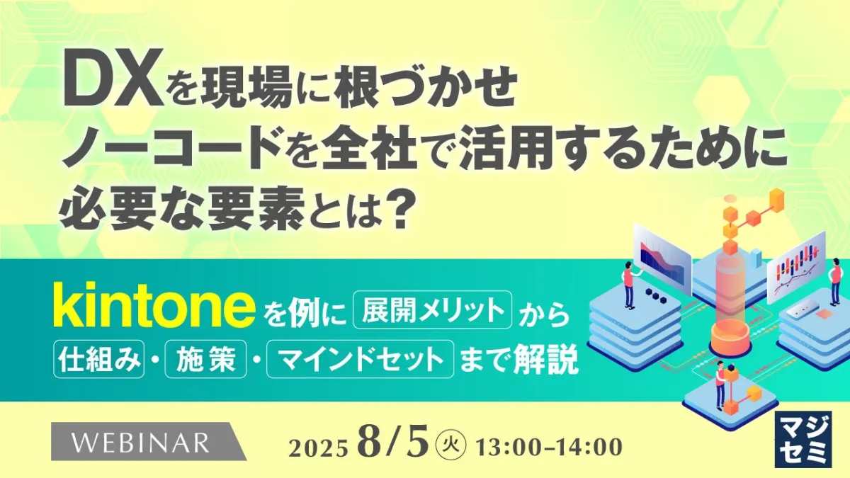ノーコードを全社の成果に結びつけるための具体策を理解することができる内容となっておりますので、ぜひご参加ください。