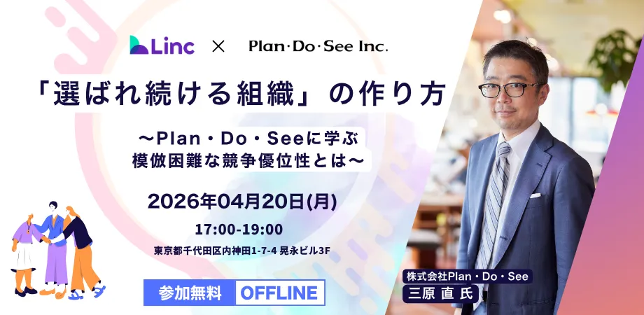 2026年4月20日、東京都千代田区のLinc Cafeにて、株式会社Lincが主催するセミナーが開催されます。タイトルは「選ばれ続ける組織のつくり方〜Plan・Do・Seeに学ぶ、模倣困難な競争優位性とは〜」です。このイベントでは、外国人材の採用や定着を支援するAIプラットフォーム「Global Hub」を展開するLincが、サービス業における組織変革について掘り下げていきます。