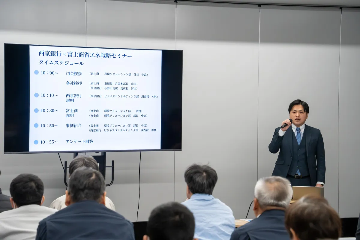 2026年1月23日、西京銀行と富士商株式会社は共同で「企業のための省エネ戦略セミナー」を開催しました。このセミナーはエネルギーコストの高騰、さらには脱炭素社会の実現を視野に入れた内容で、地域企業が直面している課題に応える形で企画されました。