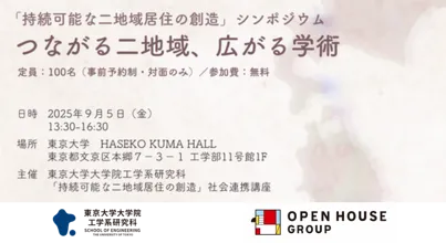 2025年9月5日、東京大学にて公開シンポジウム『つながる二地域、広がる学術』が開催される。これは、東京大学大学院工学系研究科の社会連携講座である「持続可能な二地域居住の創造」によるもので、株式会社オープンハウスグループも参加している。