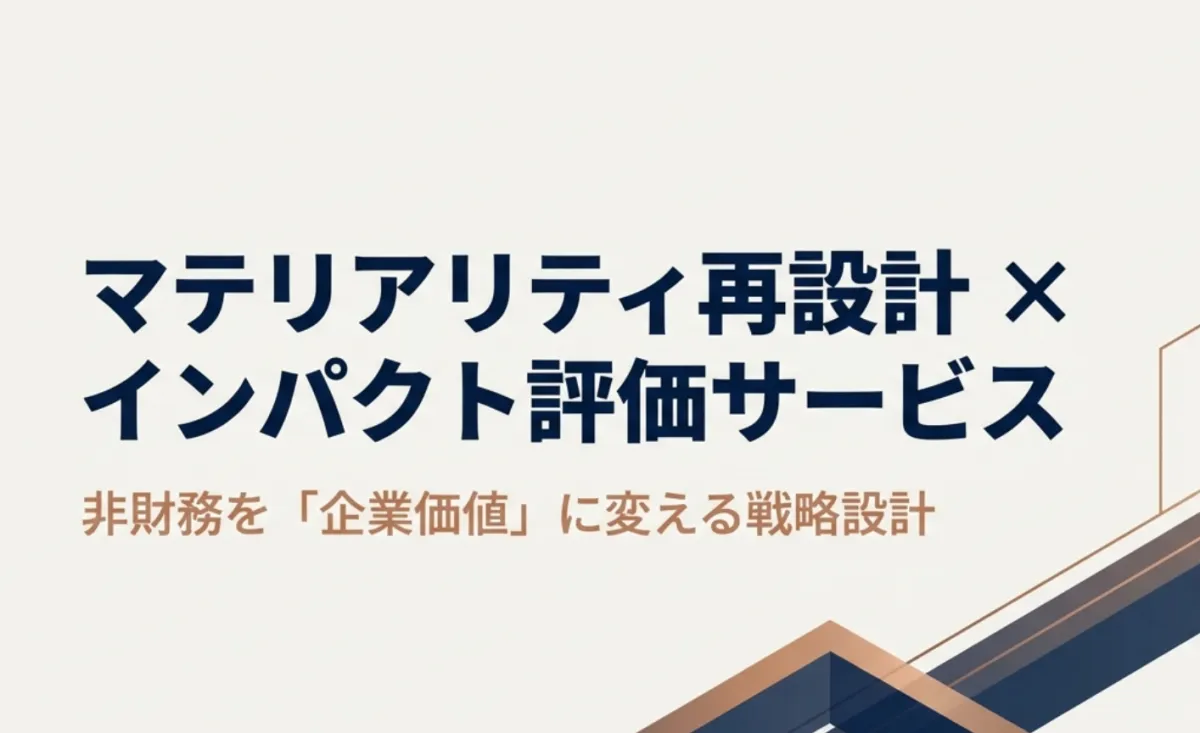 そのような背景の中で、ソーシャルインパクト・リサーチが提供する「マテリアリティ再設計×インパクト評価」サービスが注目されています。このサービスでは、企業価値に関連させた形でマテリアリティを再設計し、KPIやKGIの設定、インパクト評価、さらには企業価値ストーリーの構築を一貫して支援します。