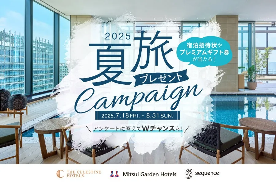 「三井ガーデンホテルズの宿泊招待状が当たる夏旅プレゼントキャンペーン」は、日本語会員なら誰でも参加可能です。今年6月にリニューアルオープンした「三井ガーデンホテル仙台」や、2024年に新規開業した「三井ガーデンホテル京都三条プレミア」、「三井ガーデンホテル銀座築地」など、全国にある33のホテルから利用可能な宿泊招待状が抽選で当たります。ビジネスからレジャーまで幅広いニーズに応えるこれらのホテルで、特別な宿泊体験を楽しんでください。