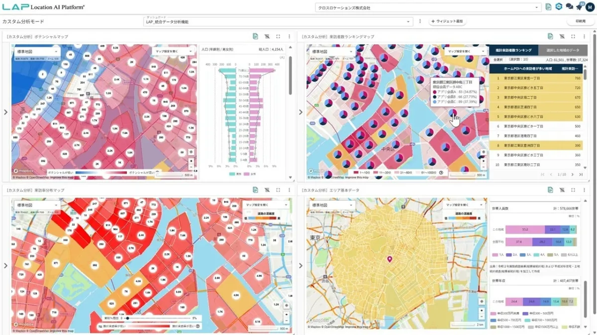 クロスロケーションズ株式会社は、東京を拠点に急速に成長を続ける企業の一つです。その中でも、自社開発の人流データ分析プラットフォーム「Location AI Platform®(LAP)」の進化が注目されています。2025年6月19日には新たに「統合データ分析機能」を正式にリリースすることを発表しました。この新機能により、企業が保有する様々なデータが一つの地図上で統合・可視化・分析できるようになります。