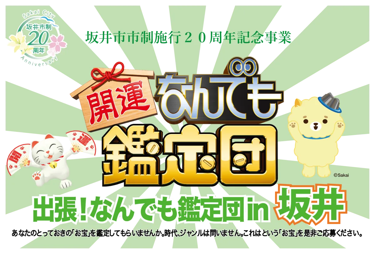 福井県坂井市が市制施行20周年を迎えるにあたり、特別なイベント「出張!なんでも鑑定団in坂井」を開催することが決まりました。このイベントは、人気テレビ番組『開運なんでも鑑定団』の出張鑑定として実施され、8月2日(日)にハートピア春江で公開収録が行われます。