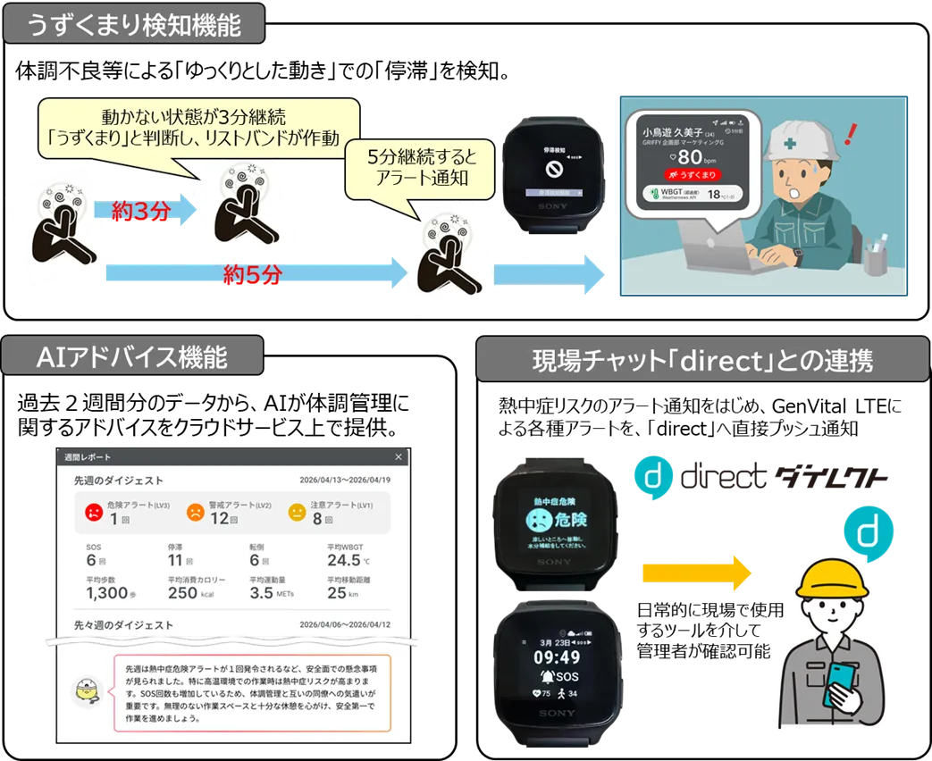 エコモット株式会社の連結子会社であるGRIFFYが、現場作業員の安全と健康をサポートする体調管理ソリューション「GenVital LTE」に新しい機能を追加することを発表しました。この新機能は2026年4月中旬から提供され、作業環境のさらなる安全性を確保することを目指しています。