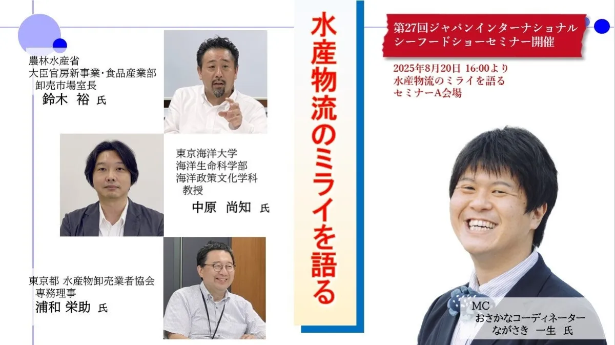 2025年8月20日、東京ビッグサイトにて水産物流の現状、課題、そして未来について議論するセミナー「水産物流のミライを語る」が開催されます。近年、物流業界は人手不足や環境変化などの影響を受け、特に水産業においてはその現状が深刻化しています。このセミナーは、業界の第一線で活躍する実務家や研究者が一堂に会し、具体的な未来像を描くことが目的です。