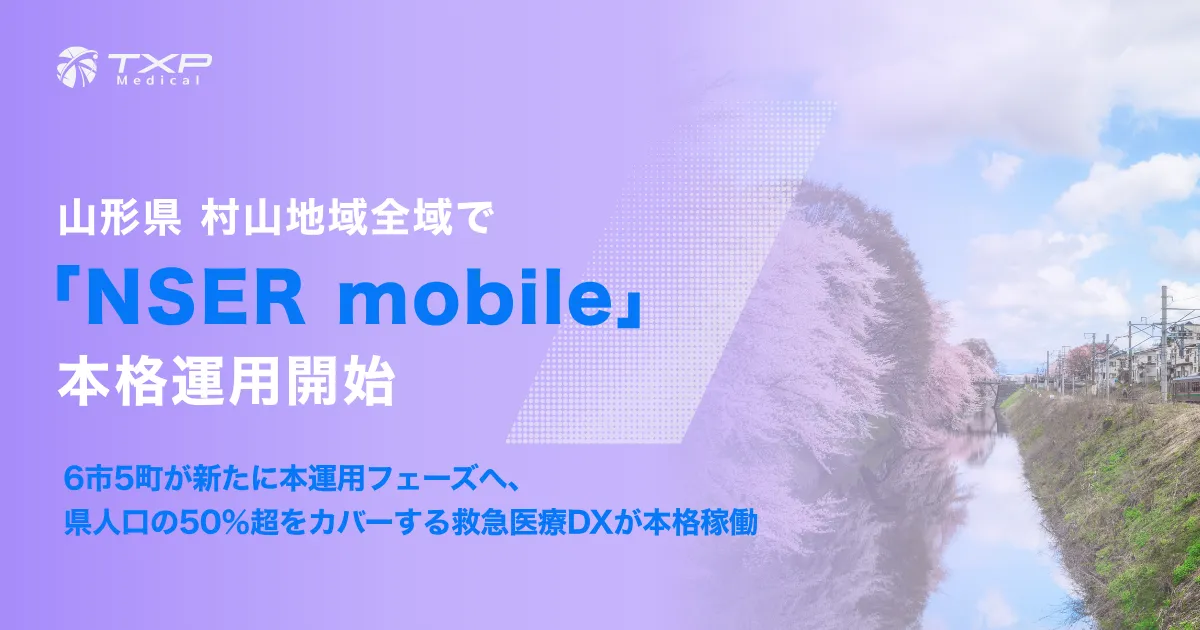 2025年7月1日、山形県の上山市、村山市、天童市、東根市、尾花沢市、大石田町、寒河江市、河北町、西川町、朝日町、大江町の6市5町で、TXP Medical株式会社の救急医療支援システム「NSER mobile」が本格運用されることが決定しました。この運用により、既に2024年7月から導入が始まっている山形市、山辺町、中山町と合わせて、村山地域全域、約52万人の住民を含む14市町での救急医療DX体制が整います。