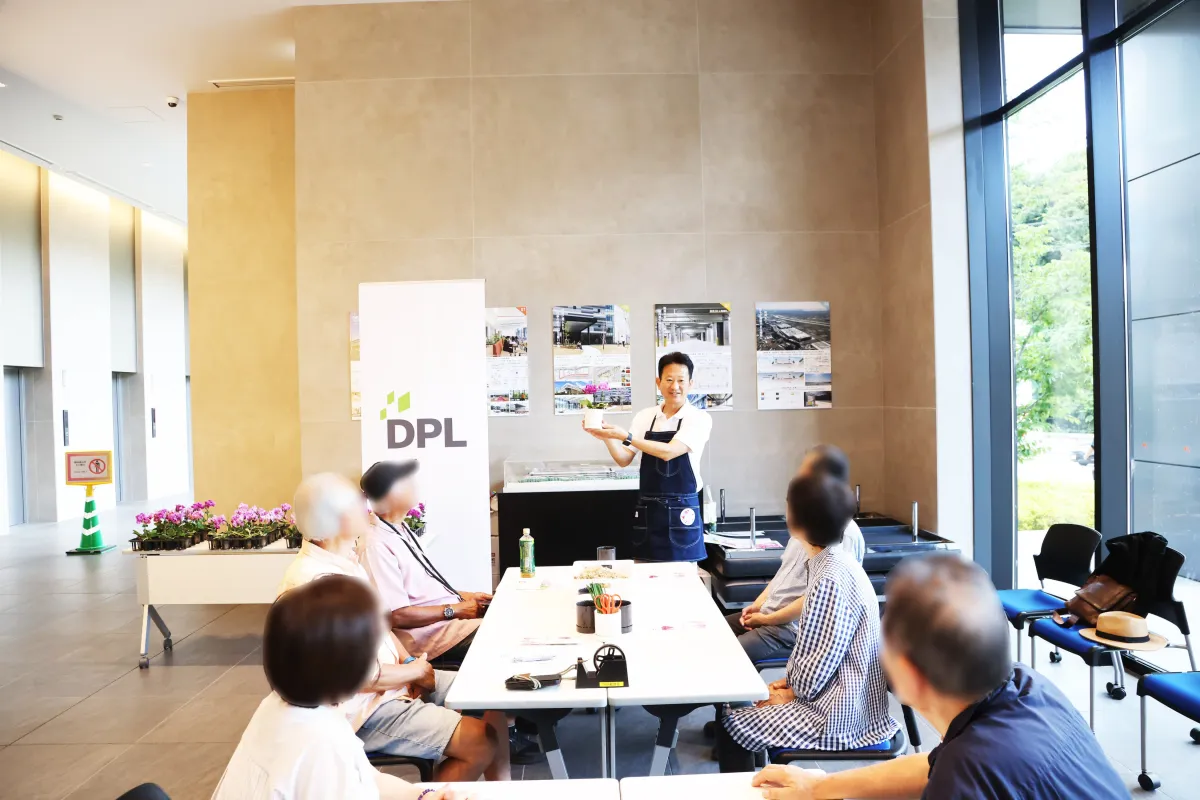 大和ハウスグループは、地域社会との関係構築を重視しており、物流施設でも様々なイベントを通じて地域住民や入居テナントとの絆を深めることを目指しています。このワークショップにも地域の住民やテナント従業員約20名が参加し、ミニ胡蝶蘭の選定とフラワーアレンジメントを楽しみました。