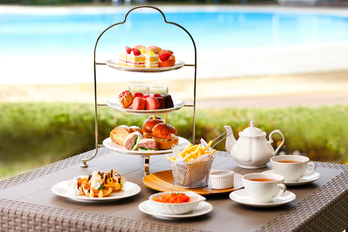 このアフタヌーンティーは、開放的なプールサイドの魅力的な環境で楽しむことができる数少ない屋外型のティーセットです。豊かな緑と青空の中、愛犬と一緒に特別な瞬間を過ごせるのは、まさに非日常の体験です。今年から愛犬同伴が許可されたことで、もっと多くの思い出を愛犬と共に作ることが可能になりました。