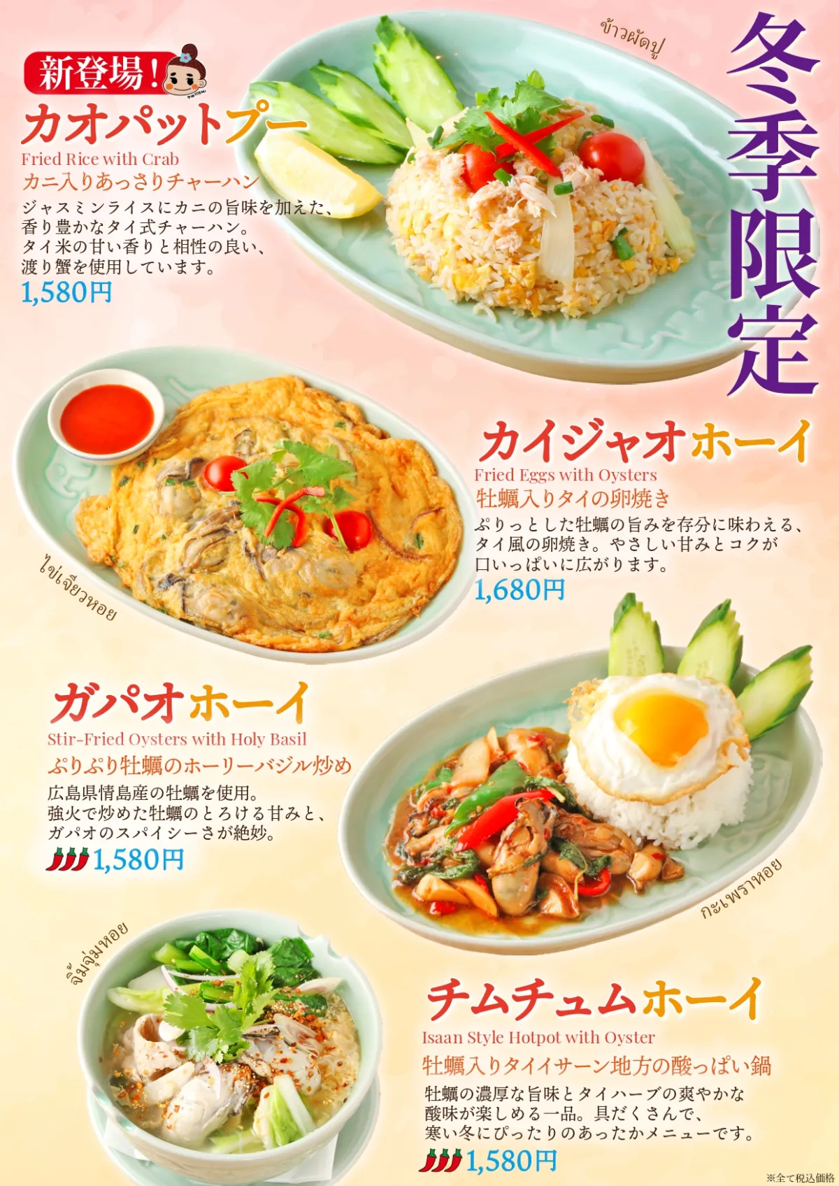 本格的なタイ料理と冬の海鮮メニュー