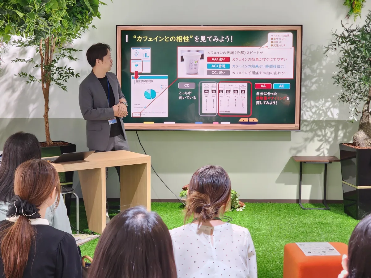 特に、遺伝子検査を通じて知った情報を元に、自分の体質や健康リスクを理解し、そのデータをいかに日々の生活に活かすかに焦点が当てられました。参加者は、自分自身の遺伝子に基づく情報を学びながら、健康的な生活の道筋を探ることができたのです。