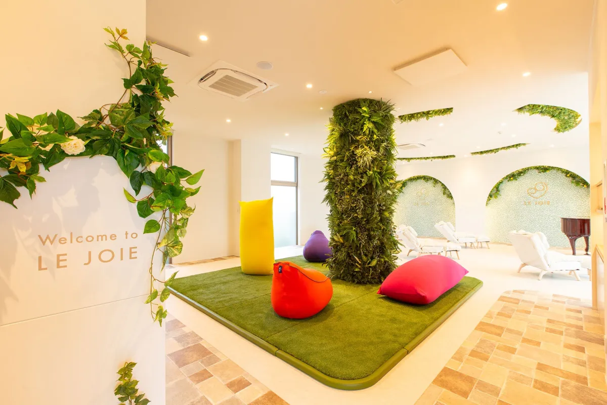「ル・ジョア」の特徴は、個室が6部屋用意されていることと、1階には広々としたラウンジが併設されていることです。訪れるママたちがリラックスできるリゾートライクな空間となっており、さまざまなサービスが提供されています。心温まるおもてなしとして、専任のシェフが手がける食事やアフタヌーンティーが人気です。