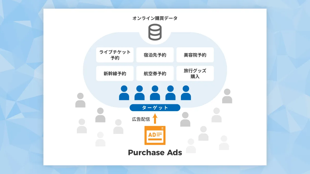 「Purchase Ads」では、ユーザーのオンライン購買データや、サブスクリプションサービスに関するデータ、決済情報、予約データなど、さまざまなデータを活用します。これにより、広告主はリアルタイムでユーザーの挙動を捉え、よりパーソナライズされた広告を表示することが可能になります。また、通常の属性情報に依存せず、実際の購買行動に基づいてターゲットを設定することで、ユーザーインサイトを深く理解できます。
