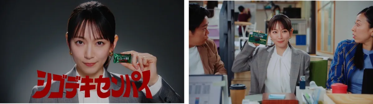 新CMでは、吉岡さんが同僚の社員に向き合い、仕事の合間に摂るチョコレートの重要性を伝える様子が描かれている。彼女は「チョコレート効果は働く人の常識」と力説し、チョコレートを通じて集中力を保つ方法を提案する。