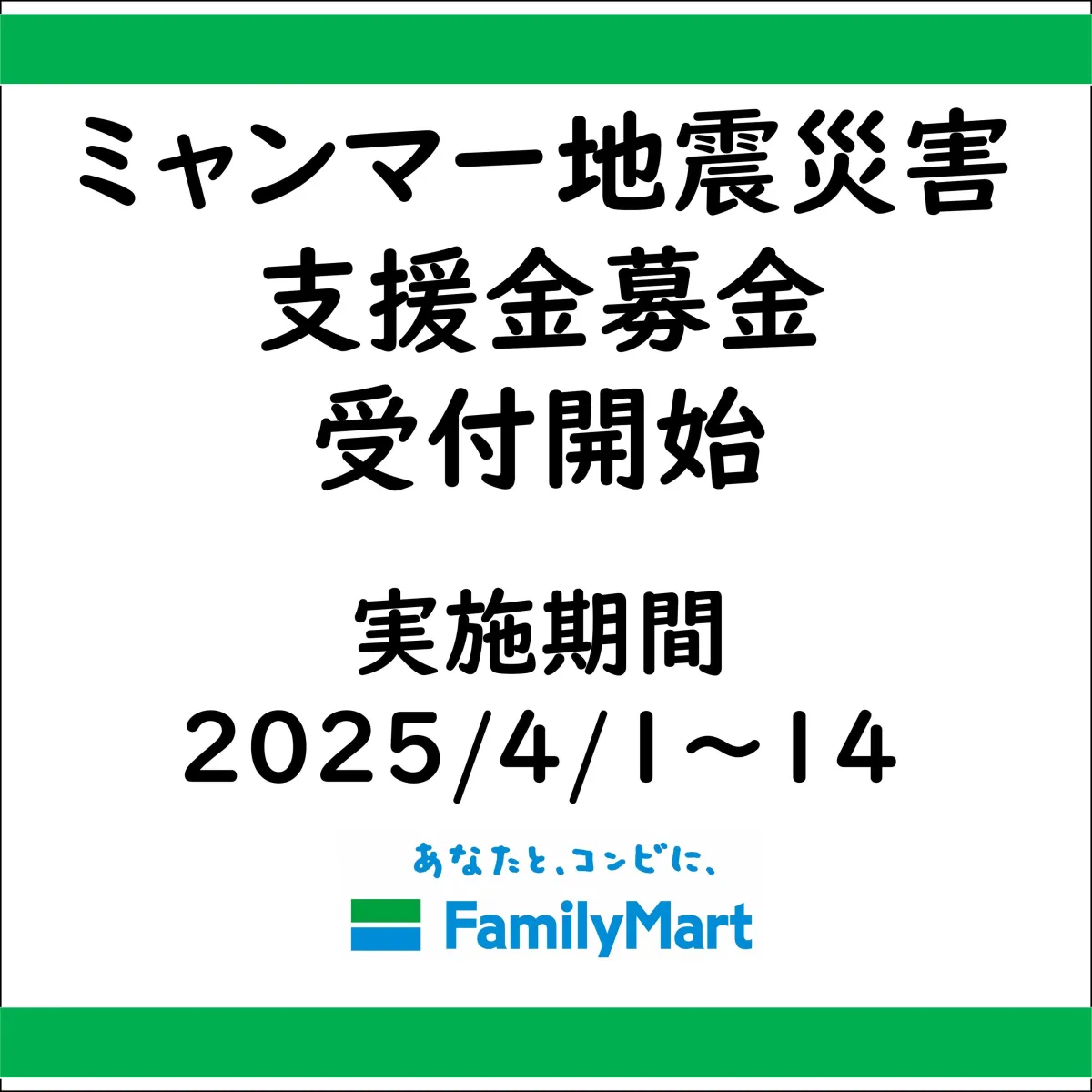 2025年4月1日より、株式会社ファミリーマートをはじめとするフランチャイズ企業は、ミャンマーで発生した地震災害の救援のため、全国の店舗で募金活動を行うことを発表しました。この募金は、被災地での復旧活動を支援するために役立てられます。