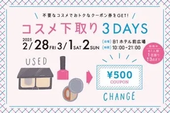 2025年2月28日(金)から3月2日(日)にかけて、横浜のジョイナスで「コスメ下取り3DAYS」が行われます。このキャンペーンでは、不要になったコスメを持参することで、500円のクーポン券をゲットできる特別な3日間となっています。これは、相鉄グループが運営するジョイナスがSDGsの取り組みの一環として企画されたもので、多くの方々にご参加いただいています。