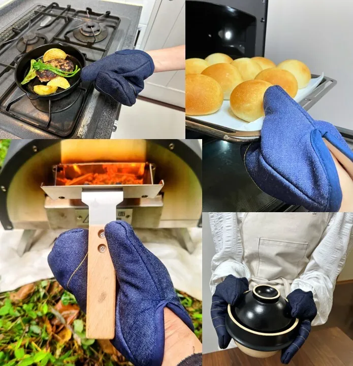 この新しいオーブンミトンは、2サイズ(S・L)から選べるようになっており、色は赤、黒、ナチュラル、デニム紺の4色があります。これにより、自分の手に合ったフィット感を得ることができます。オーブンミトンとエプロンのセット販売も行われ、様々なニーズに応えます。
