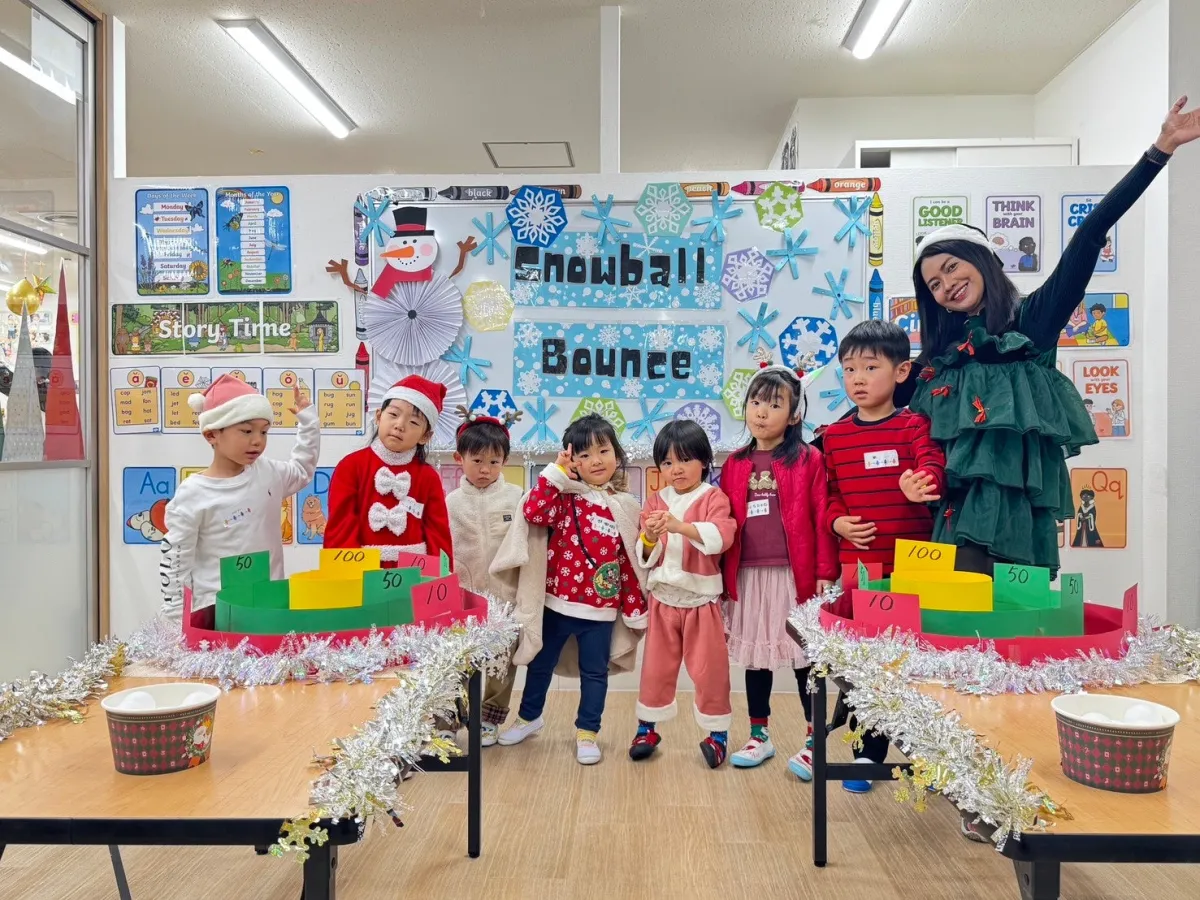 アライブのクリスマスパーティーは、全てのアクティビティが専門チームによってゼロから企画された完全オリジナルです。各校舎において、ゲームやアートクラフトを通じて自然と英語が飛び交う環境を作り上げ、参加者は英語を学ぶ楽しさを味わいました。また、壮大なクリスマスの装飾もイベントの魅力の一つであり、視覚的にも楽しませてくれました。