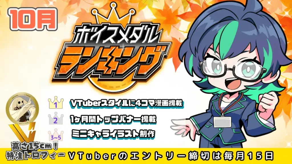 株式会社CrossVisionが運営するV-tampが、10月のボイスメダル販売数に基づくVTuberランキングを発表しました。このランキングは、VTuberたちがファンに向けて提供するボイスデータを集めた3Dモデル型のメダル「3Dボイスメダル」が基になっています。このメダルは単なる記念品ではなく、ファンが推しの特別な声を楽しみながら、デジタル空間に飾ることができるという新しい形のグッズです。