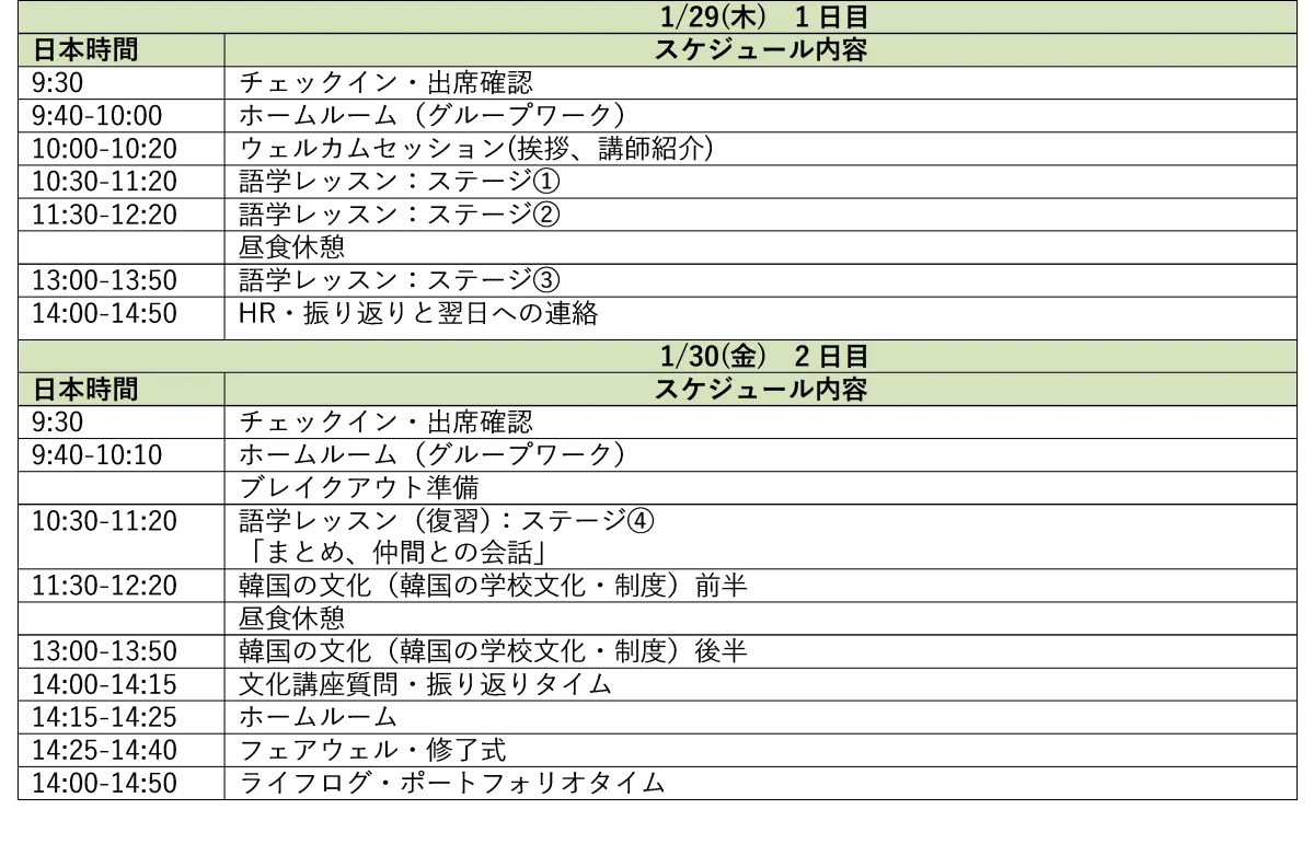 このオンライン留学プログラムは1月29日と30日の2日間にわたり行われます。第一学院高等学校は、これまでフィリピンなどでのオンライン留学プログラムを積極的に展開してきましたが、今回は初めて韓国に焦点を当てた形となります。参加者は、韓国の講師や全国各地の同校の生徒たちと直接交流できるため、実践的なコミュニケーション力を高めることが期待されます。
