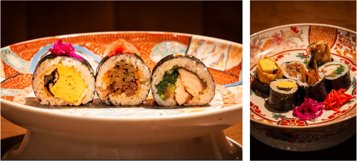 当日は、AUTEC社製ののりまきメーカーを使用し、まるで職人が手掛けたかのような精緻なロール寿司が提供されます。ここでは、和田氏が選び抜いた季節のおばんざいがトッピングされ、みんなが楽しむことのできるおばんざいロールが用意されています。自宅に友人を招くような感覚で、特別な空間での食事を体験することができるのです。